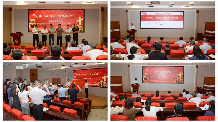 活動(dòng)中,全體黨員集中學(xué)習(xí)了習(xí)近平總書記關(guān)于全面加強(qiáng)黨的紀(jì)律建設(shè)重要論述。王浩代表黨組織向劉鈺、趙英卓、劉小本、蔡波、衛(wèi)國(guó)強(qiáng)5位黨員發(fā)放專屬政治生日賀卡,5位黨員分享了自己的入黨故事和心路歷程,重溫初心使命。機(jī)關(guān)一黨總支書記張向東以《學(xué)黨紀(jì) 守規(guī)矩 強(qiáng)黨性 創(chuàng)業(yè)績(jī)》為題,從學(xué)黨紀(jì),夯實(shí)思想根基、守規(guī)矩,筑牢底線之魂、強(qiáng)黨性,踐行初心使命和創(chuàng)業(yè)績(jī),彰顯黨員本色四個(gè)方面講授專題黨課,并帶領(lǐng)全體黨員面向黨旗莊嚴(yán)宣誓。最后,大家集體觀看了警示教育片。