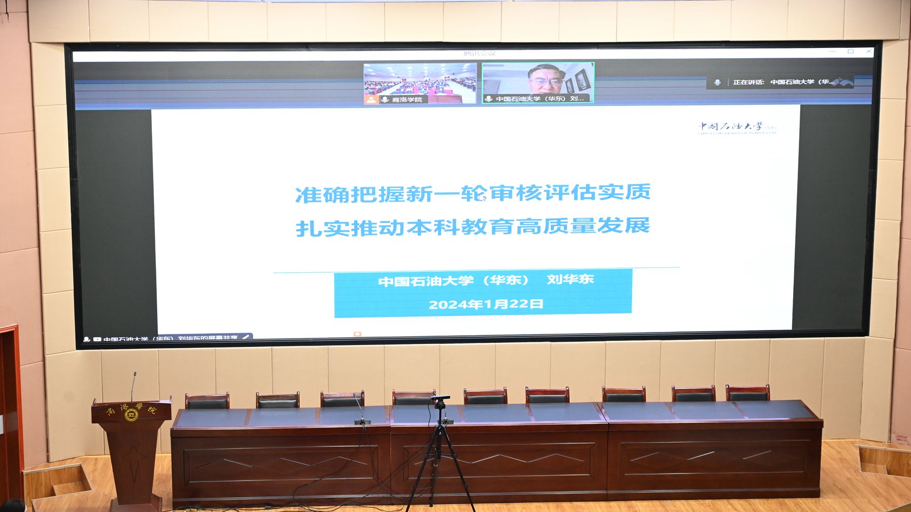 1月22日上午,我校召開審核評估工作迎評動員會,全面部署本科教育教學(xué)審核評估相關(guān)工作。中國石油大學(xué)(華東)校務(wù)委員會副主任,原黨委副書記、副校長劉華東教授應(yīng)邀作專題輔導(dǎo)報告。校黨委書記張志昌作動員講話。校長范新會主持大會。黨委副書記劉勇,副校長劉寶盈、王新軍、郭瑾出席會議。