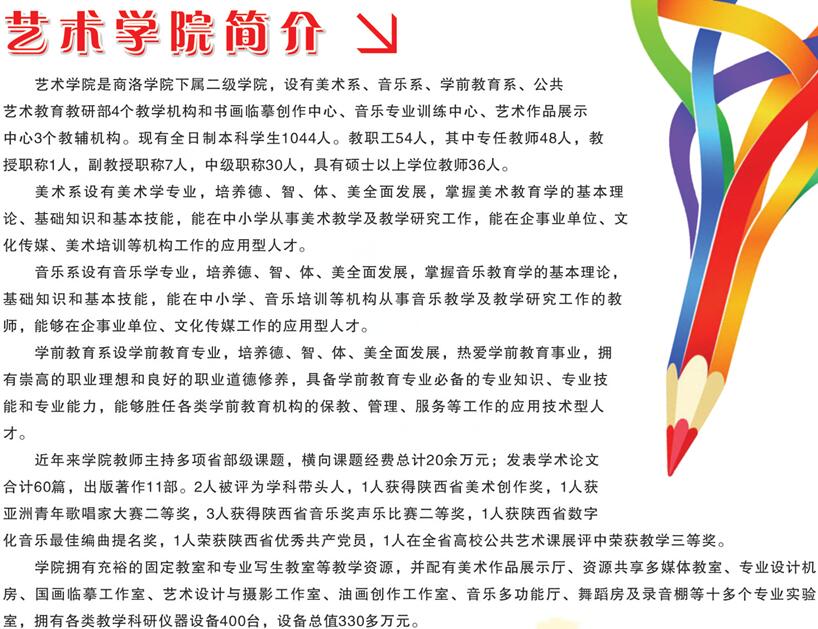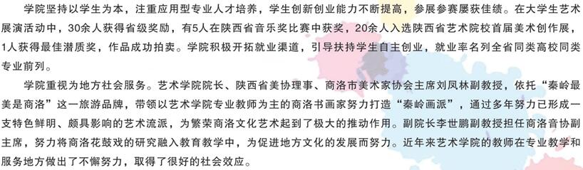 商洛學(xué)院是陜西省政府舉辦的全日制普通本科院校,坐落于著名作家賈平凹故鄉(xiāng)、陜東南生態(tài)園林城市——商洛市,其前身是成立于1976年的“陜西師范大學(xué)商洛專修科”,1984年經(jīng)陜西省人民政府批準(zhǔn)更名為“商洛師范??茖W(xué)校”,2006年2月經(jīng)教育部批準(zhǔn)升格為本科院校。2011年起成為省市共建高校,2014年被省教育廳確定為向應(yīng)用技術(shù)大學(xué)轉(zhuǎn)型發(fā)展試點(diǎn)高校。