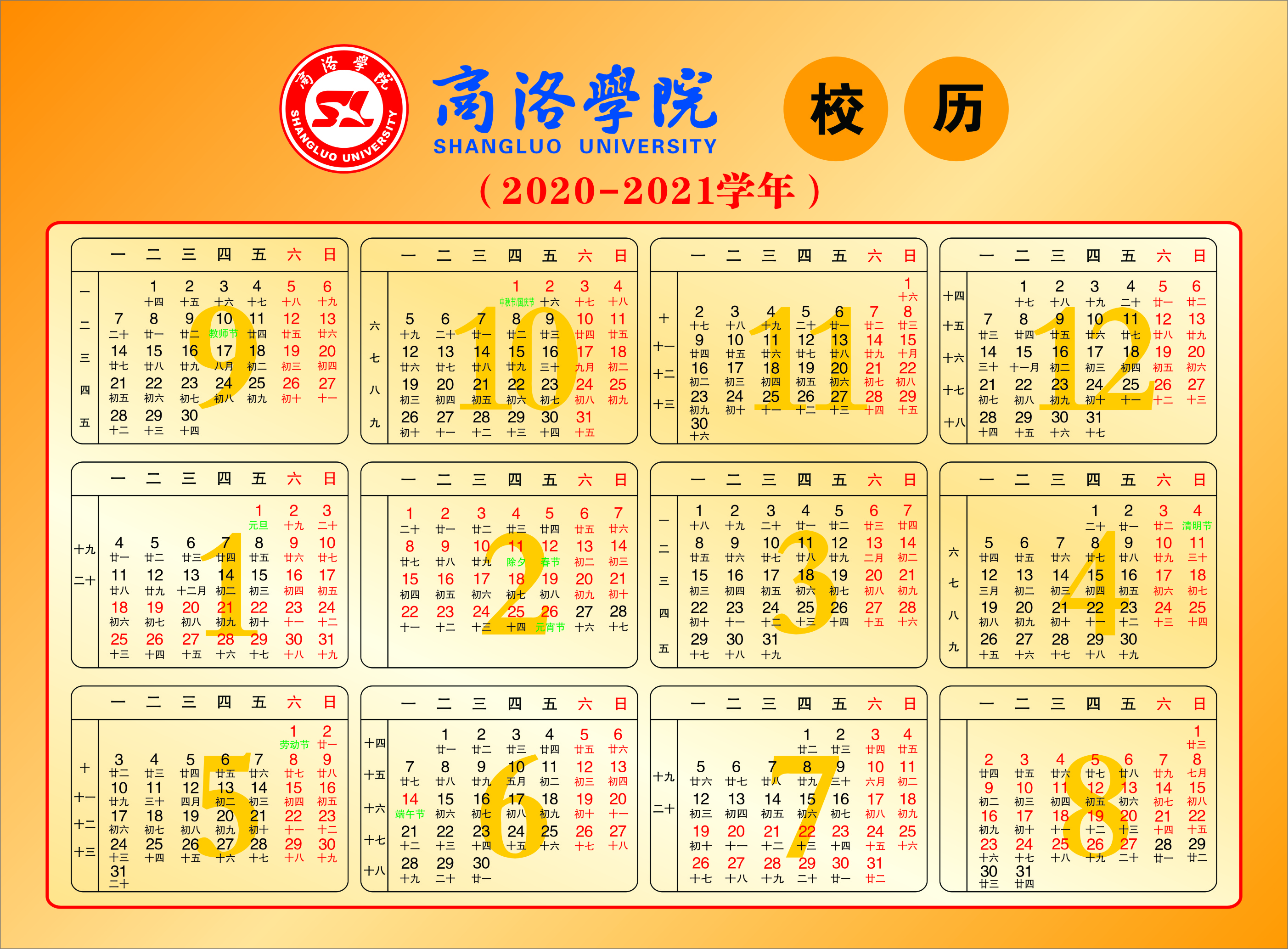 商洛學(xué)院校歷(2020—2021學(xué)年)