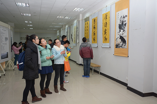 為紀(jì)念毛澤東同志誕辰120周年,抒發(fā)我校師生對毛主席的深厚感情,歌頌黨的豐功偉績,促進(jìn)了書畫愛好者之間的交流,12月10日上午,由黨委宣傳部、藝術(shù)系黨總支主辦的劉宇昭詩詞書畫作品展在藝術(shù)系展廳開幕。校黨委副書記左曉民,商洛市民間藝術(shù)家協(xié)會主席田野,省、市書畫名家李子賢、魏振中、崔來雋、崔學(xué)民、張中惠及我校藝術(shù)系師生和書畫愛好者出席了開幕式